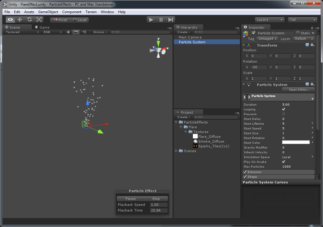And thank you for taking the time to help us improve the quality of unity documentation. When you set it to destroy, the game object with the particle system will be destroyed as soon as there are no alive particles anymore. I wanted to play the system only once, and set loop to false.